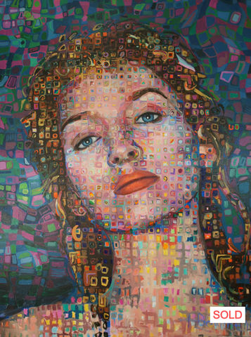 The aim of Julian Bourne's contemporary portraits is to heighten the illusionary quality by resolving up to 2,000 abstract paintings into an effect that is closer to life. The blending of colors adds luminescence and depth, while the illusion explores the etherial emotions and character of the human form. The enigma of the unknowable is amplified, as is the beauty. We hope you agree.